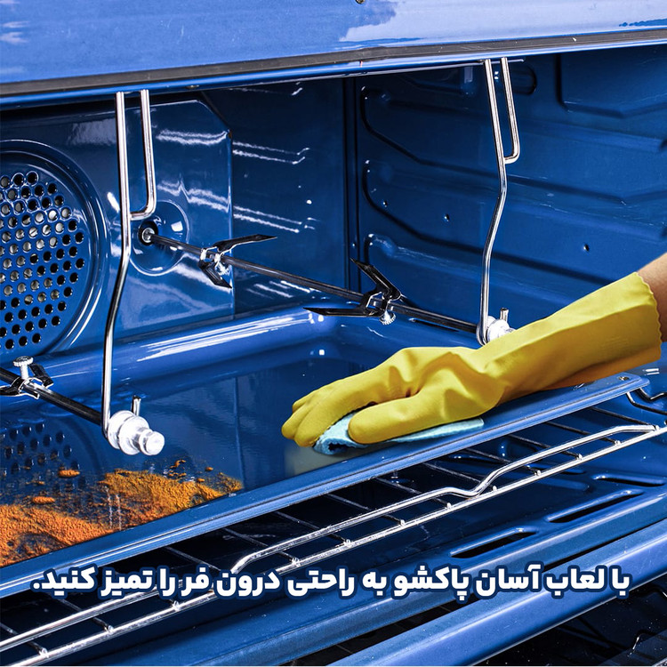 پایهها با قابلیت تنظیم ارتفاع, دارای 2 شعله زمان دار, دارای ترموکوپل صفر ثانیه, دارای جرقه زن داخل فر, دارای دو جوجه گردان همزمان, داری فن انتقال حرارت درون فر, دماسنج دیجیتال و اندازه گیری دقیق دمای فر, صفحه رویه یک تکه, صفحه کنترل لمسی, لعاب ETC آسان پاک شو درون فر و درب فر, مجهز به قفل کودک, ولومهای باکالیت مقاوم به حرارت با سطح نرم |
