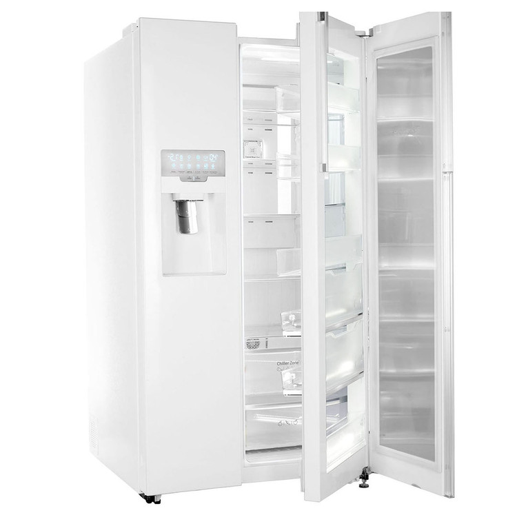 ساید بای ساید اسنوا مدل SN8-3035GW به رنگ سفید متالیک، دارای ۳ درب، مجهز به سیستم آبریز، در ابعاد ۹۲ × ۹۱ × ۱۸۱ (سانتی متر) و گنجایش ۷۷۱ لیتری (۳۵ فوتی) مناسب خانواده های پر جمعیت می باشد.